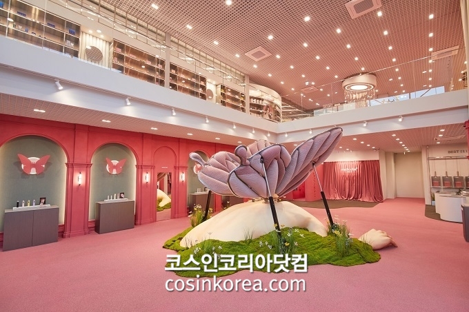 또한 매장 입구에는 분홍색 날개를 단 핑크 페어리 오브제를 세워 ‘피부가 다시 날개를 얻는 순간’이라는 메시지를 강조하는 한편, 이동 동선 역시 해당 오브제로부터 자연스럽게 확장되도록 설계해 작은 경험이 큰 만족으로 이어지는 ‘나비효과’의 의미도 구현했다.